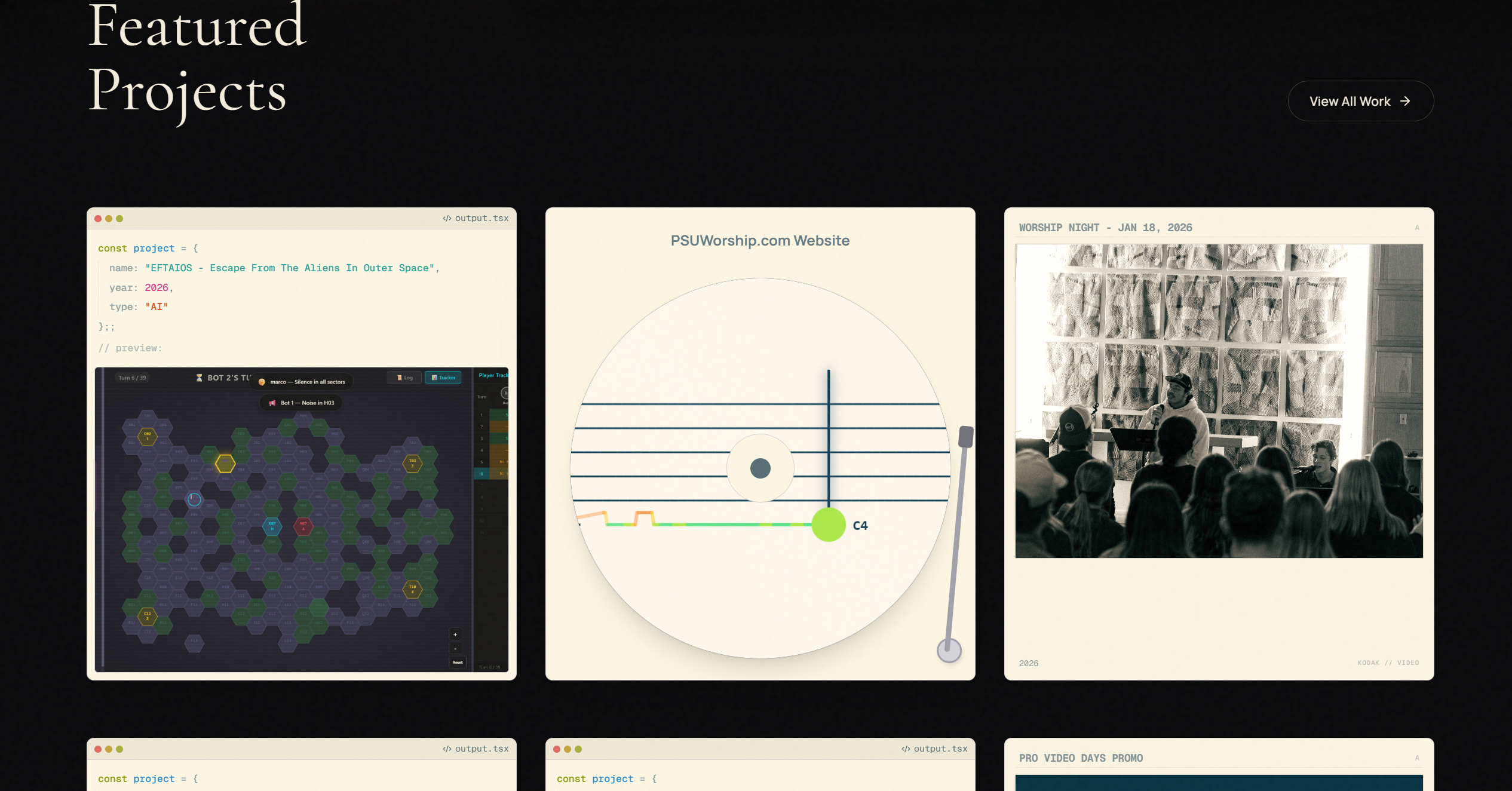 Public‑facing portfolio When a project goes public, the site updates itself with featured work and clean project pages.