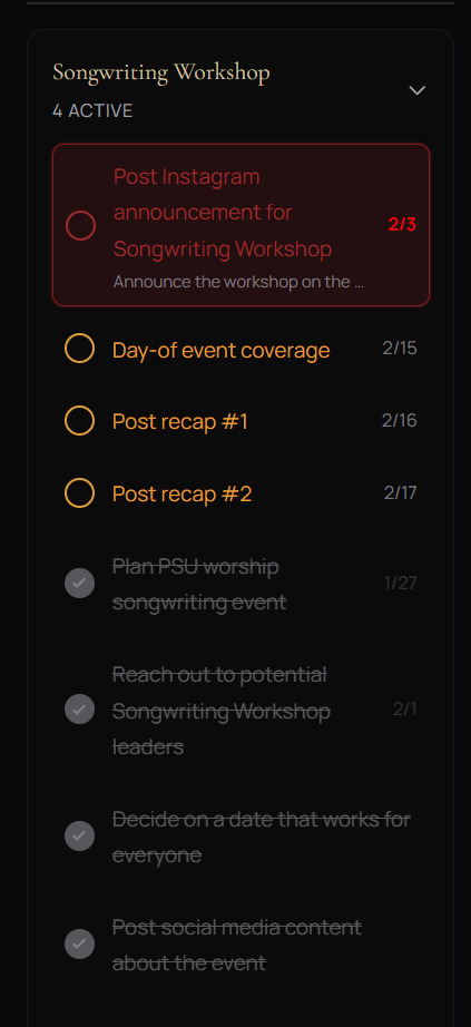 Projects and tasks (where the work lives) Projects are grouped by bucket, and tasks stay scoped to the project they belong to.