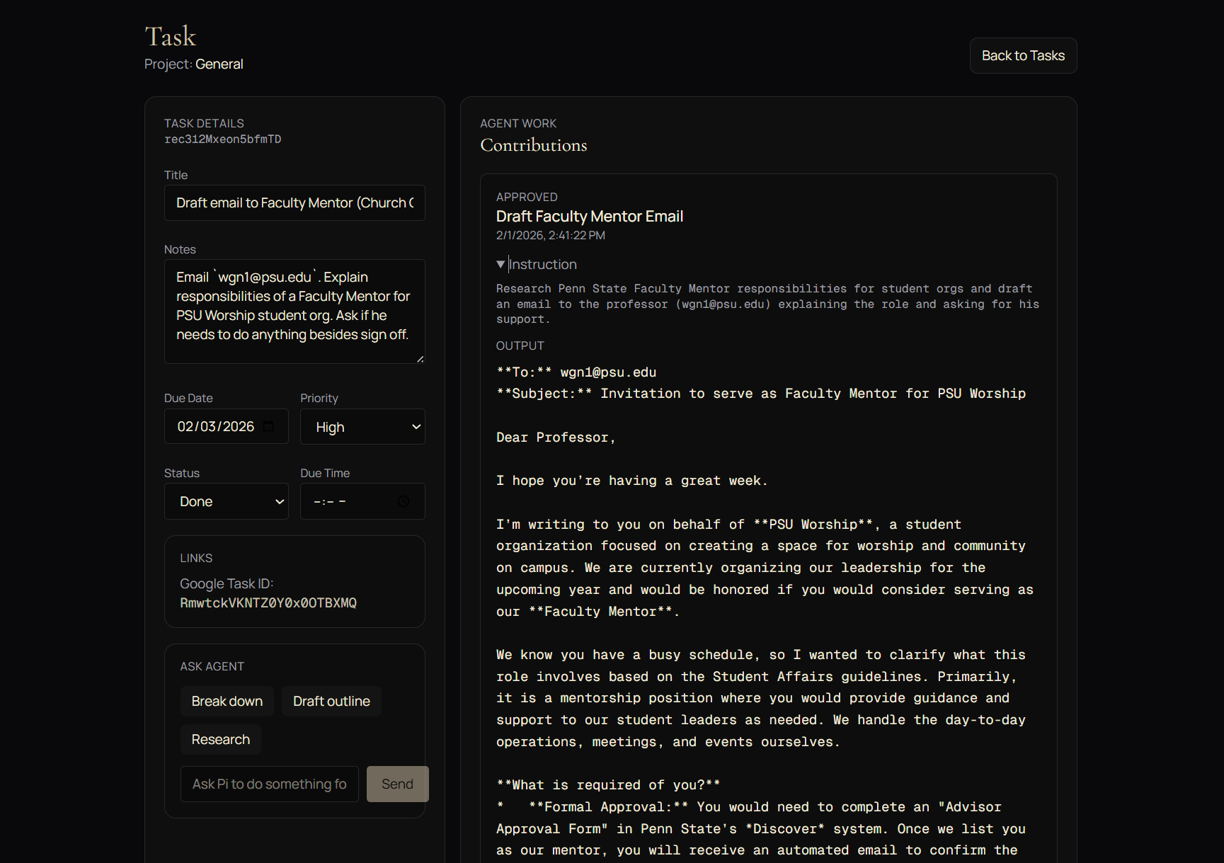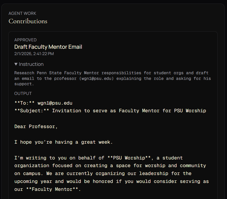 Agent‑assisted work (human‑approved) The agent drafts contributions, but I approve anything that ships inside the task view.
